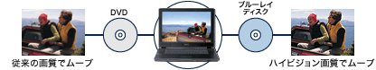 ハードディスクに録画したデジタルハイビジョン番組を、ハイビジョン画質のまま、ブルーレイディスクにムーブ(移動)できます*1。また、標準画質でDVDにムーブすることも可能。データが劣化することなく番組を保存することができます。映像データは、各メディアにムーブ後ハードディスクから自動消去されます。