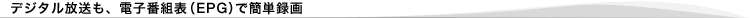 電子番組表(EPG)から録画したい番組を選ぶだけで、手軽に予約が可能。野球中継の延長などで、放送時間が変わっても、自動的に録画時間を変更します。