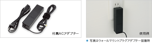 type Gは、本体だけでなく付属のACアダプターもコンパクト。手のひらに載るサイズなので持ち運びに便利です。さらに、ACコンセントに直接差せるウォールマウントプラグアダプターも付属しているので、外出先でACコードを持ち歩く必要がありません。