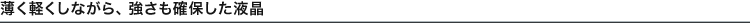 薄さ約4.4mmを誇るtype Gの液晶ディスプレイには、白色LEDを採用。導光板の薄型化やシステム基板の小型・軽量化により、従来の液晶より約50%薄くし、約30%もの軽量化を実現しています。LEDバックライトの採用で、消費電力を低く抑えているので「スタミナ」にも貢献します。またカーボン素材で外装を強化することで、薄さや軽さを維持しながら強さを追求。さらに液晶の固定方法をネジ止めとせず、外装部分と液晶枠の部分にはめこむ「フローティング構造」を採用し、圧迫が一点に集中するのを回避しました。さらに、液晶面にハードコーティングを施したことで表面硬度を高め、ひっかき傷に強い優れた耐擦傷性を実現。