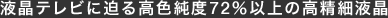 NTSC比72%以上の高色純度を実現。赤・青・緑といった原色をより忠実に再現します。DVD映画や動画サイトからダウンロードしたハイビジョン映像を、より色鮮やかに鑑賞できます。また、高輝度・広視野角なのでさまざまな角度から見ても鮮明に表示されます。