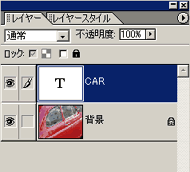 次の工程でこの画像を使って、塗りつぶし/調整レイヤーの機能をご紹介しますので、テキストレイヤー「CAR」を削除してください。 |
