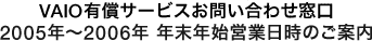 2005年〜2006年 年末年始期間の各サービスのお問い合わせ窓口につきまして以下にご案内いたします。 |