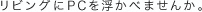 透明なフレームの中に見えるのは、一枚の写真? いいえ、これ、PCの画面です。PCをプライベートで使うことはもうあたりまえ。だからこそ、家で使うPCのカタチはオフィスで使うPCの延長であってはいけない。 私たちの生活空間に入り込み、大切なパートナーになってきたPCには、あるべきカタチがあるはず。