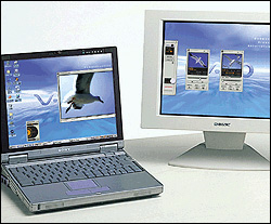 複数の「バイオ」を、i.LINK端子でつなぎ最大約10〜50Mbps*の実効速度での高速なデータ転送が行えます。ファイルやプリンターの共有などに利用できます。 |