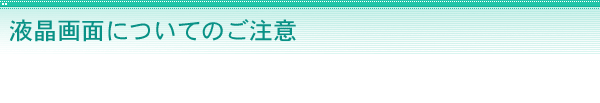 液晶画面は非常に精密度の高い技術で作られていますが、ごくわずかの画素欠けや常時点灯する画素があります。また、見る角度によってすじ状の色むらや明るさのむ らが見える場合があります。これらは、液晶ディスプレイの構造によるもので、故障ではありません。交換・返品はお受けいたしかねますのであらかじめご了承ください。