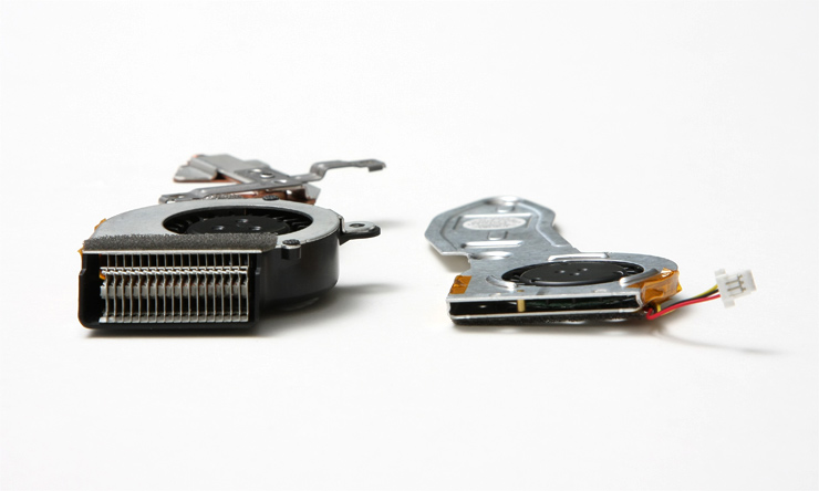 ここまで薄く作ると内部に空気の層がなく、対流が起こらないため、ファンを使わずに熱を拡散させる方法がありません。そこでファンを取り付けることに決めたのですが、これだけ薄いファンは世の中に存在しなかったのです。そこでファンも新たに開発しました。このようにカスタム部品を多く開発したからこそ、約13.9mmに収めることができたのです。