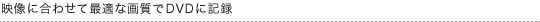 快適な操作と高速出力を実現する、DVDオーサリングソフト。従来のGOP(Group Of Point)単位でのカット編集から、新たにフレーム単位のカット編集に対応。高速サーチ機能も搭載され、よりスムーズな作業が可能になりました。また、ViXS XCode2-Lの機能を使ったハードウェアトランスコード機能*でMPEG2ビットレートの高速変換が可能。ディスク容量を超えた映像は自動的に再変換し、DVD1枚に収まるようオーサリングします。