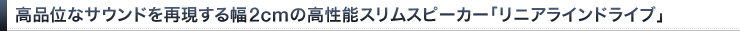 画質だけでなく、迫力に満ちた臨場感のある音質にもこだわりました。5.5W+5.5W高性能スリムスピーカー「リニアラインドライブ」と11Wサブウーファー「ダイナミクスウーファー」を搭載。新開発の「リニアラインドライブ」は、従来と異なるボイスコイルや磁気回路設計により、フルレンジながら幅わずか2cmのスピーカーを実現しました。ツイーターのようなみずみずしい高音域を実現し、左右方向の音像にとっては理想的な点音源に近づくことで、音の立体感や臨場感が向上しました。また、背面の大口径65mmサブウーファーは、スピード感のある引き締まった豊かな低音を再現します。