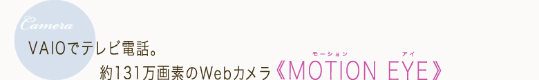 約131万画素のWebカメラ《MOTION EYE》と内蔵マイクを搭載。より鮮明な画像で、インターネットを利用したテレビ電話などのコミュニケーションが可能です。
