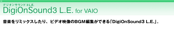 | バイオ付属版である「DigiOnSound3 L.E. for VAIO」は、AVI 2.0形式の動画ファイルにも対応。2GBを超える長時間映像の音声編集(アフレコ)が可能で、より自由度の高いビデオ制作が行なえます。 |