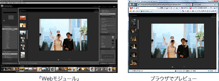 「Web」モジュールを選択すれば、プログラミングの経験がなくても、WebギャラリーをHTML形式またはAdobe Flash形式で手軽に作成・公開できます。また、Webギャラリーのプレビューは、サイトに公開する前にPhotoshop Lightroom 2上で確認できます。