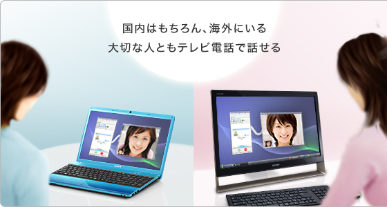 VAIOは、Skypeをプリインストール。本体に内蔵されているカメラを使って、すぐにテレビ電話が楽しめます。