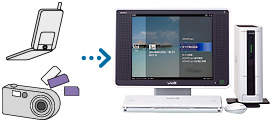 DCF規格、WIA規格対応のデジタルスチルカメラに対応。機器により、直接取りこみに対応しない場合があります。