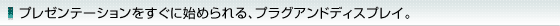 外部ディスプレイに接続するだけで、自動的に適正な解像度で出力できる、プラグアンドディスプレイを搭載。プロジェクターを使用したプレゼンテーションをスムーズに開始できます。