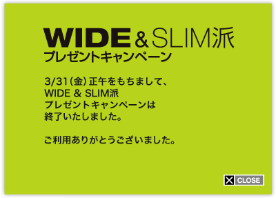 3/31(金)正午をもちまして、WIDE & SILM派プレゼントキャンペーンは終了いたしました。